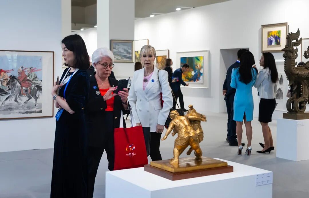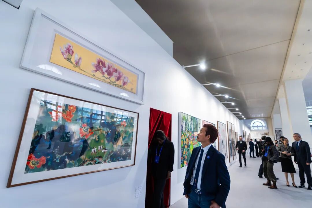 一笔一画勾勒千姿百态,一雕一琢彰显时代风采。大展共展出了100多位中国当代艺术家的200余件艺术作品,涵盖中国画、书法、油画、雕塑、多媒体艺术及非物质文化遗产等领域,彰显了中华民族各美其美、美美与共的文明共处之道,搭建起求同存异、交流互鉴的沟通共享之桥,为全球文化多样性的推广和人类文明的共同进步提供了新的视角。