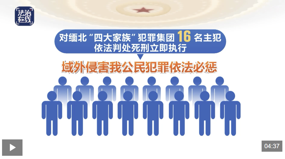 有力维护公共安全。对缅北“四大家族”犯罪集团16名主犯依法判处死刑立即执行,域外侵害我公民犯罪依法必惩。