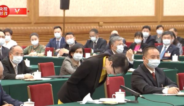 24日下午,在湖北代表团审议现场发生了令人感动的一幕:一名来自湖北省武汉市的人大代表深深鞠了一躬。她说是受当地社区居民委托,当面向习主席表示感谢的。这一个鞠躬,是湖北和武汉人民对习主席的深深敬意。