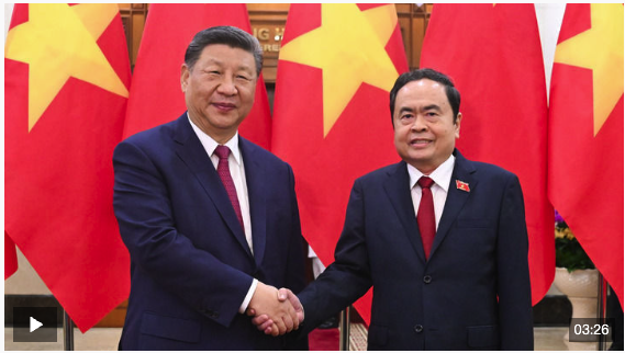 习近平指出,再次对越南进行国事访问,亲眼见证了越南革新事业取得的新成就,亲身感受到中越友好的深厚根基。当前,中国正在以中国式现代化全面推进强国建设、民族复兴伟业,越南即将开启民族发展新纪元,双方都处在各自发展振兴的关键时期。面对变乱交织的国际形势,中越两国要坚定道路自信和制度自信,加强团结协作,持续深化具有战略意义的中越命运共同体建设,携手迈向现代化,为世界注入更多稳定性和正能量。