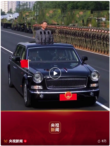 9月3日上午,纪念中国人民抗日战争暨世界反法西斯战争胜利80周年大会在北京天安门广场隆重举行,以盛大阅兵仪式,同世界人民一道纪念这个伟大的日子。在雄壮的军乐声中,习近平乘车沿着宽阔的长安街,依次检阅徒步方队和装备方队。受阅部队军容严整、意气风发,铁甲战车整齐列阵、威风凛凛。检阅车徐徐前行,官兵的目光紧紧追随。“同志们好!”“同志们辛苦了!”习近平的亲切问候鼓舞士气。“主席好!”“为人民服务!”受阅官兵斗志昂扬,响亮的回答声震长空。当习近平乘检阅车驶回天安门,受阅官兵齐声高呼强军口号:“听党指挥!能打胜仗!作风优良!”“正义必胜!和平必胜!人民必胜!”用最响亮的声音发出最豪迈的誓言。
