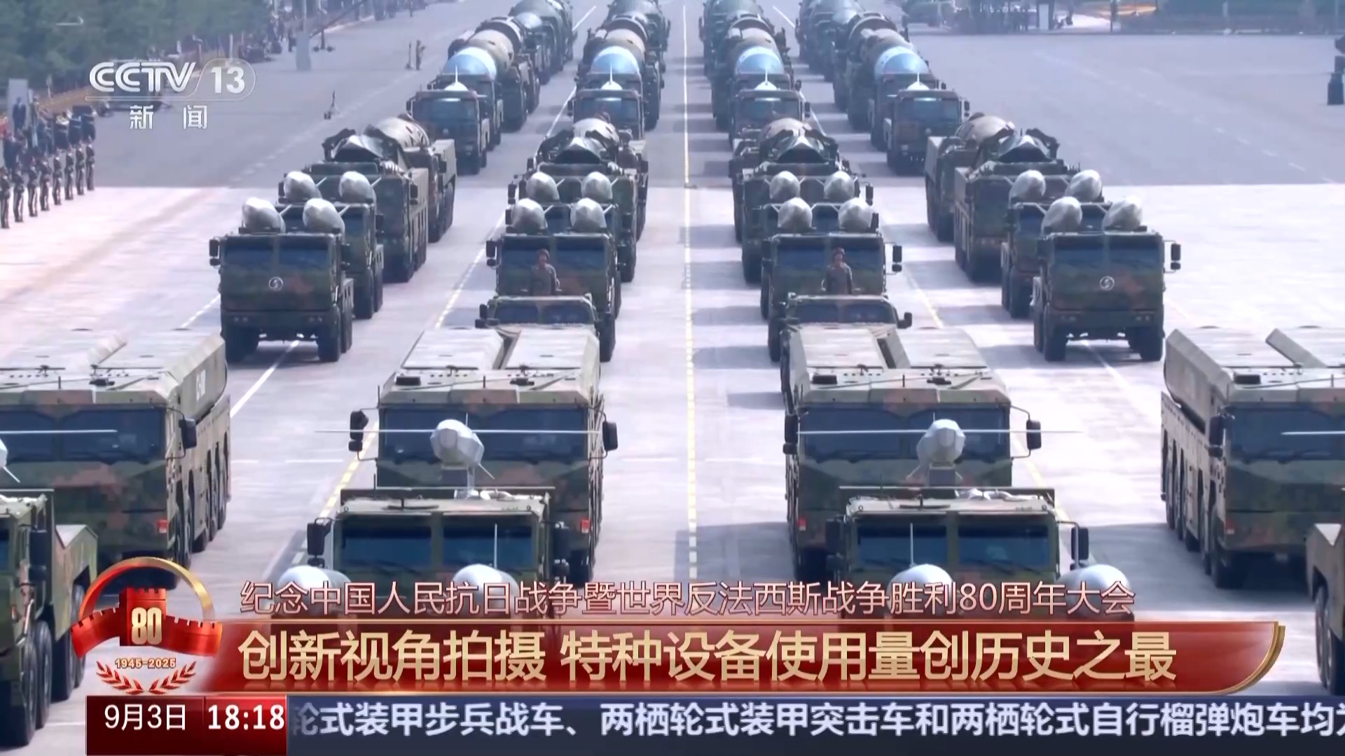 本次纪念大会直播,总台创新视角拍摄和特种设备使用量均创历史之最。在天安门广场,首次启用三条索道,展现磅礴气势;伸缩臂、升降塔、遥控车,一系列特种拍摄设备,让镜头无限接近徒步方队和装备方队,让观众身临其境,感受视觉震撼。