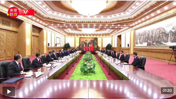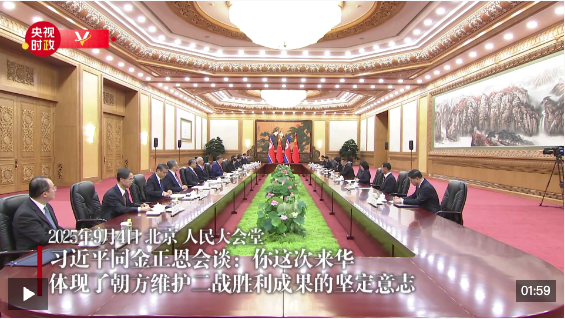 9月4日晚,中共中央总书记、国家主席习近平在北京人民大会堂同来华出席纪念中国人民抗日战争暨世界反法西斯战争胜利80周年活动的朝鲜劳动党总书记、国务委员长金正恩举行会谈。