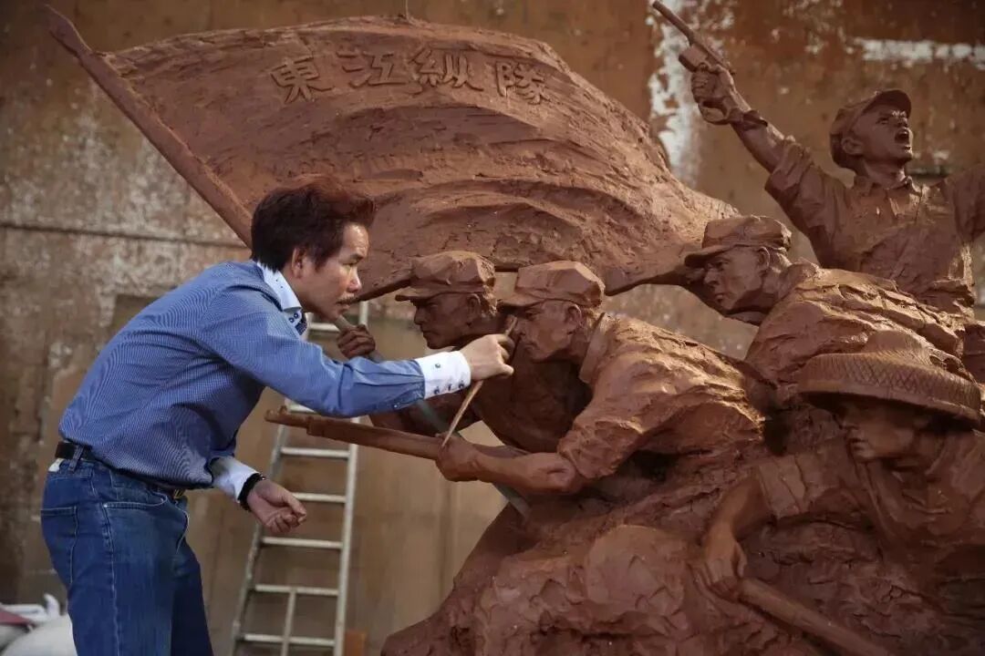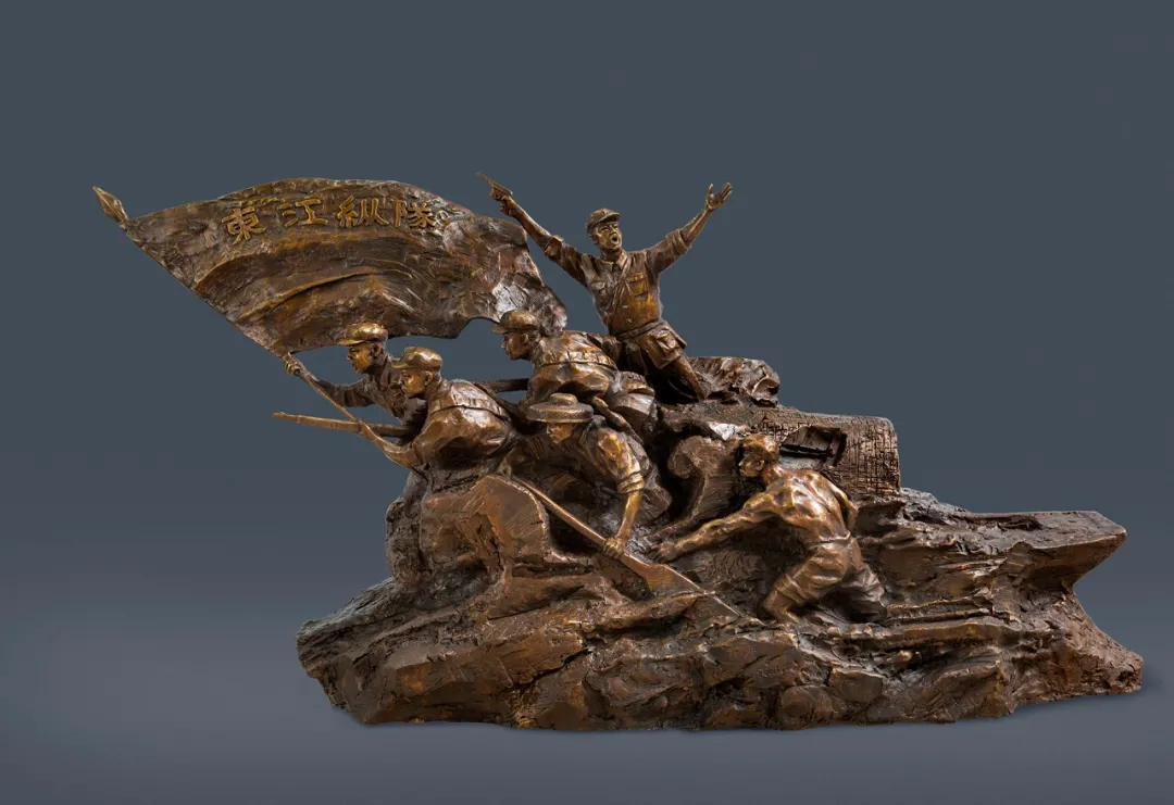 Xu Hongfei,an internationally acclaimed sculptor best known for his Chubby Women series,now turns to history.With his work Forward,Forward,he honors the East River Column—a guerrilla force that fought bravely in South China during the War of Resistance Against Japanese Aggression.Sculpture brings their memory vividly to life.
