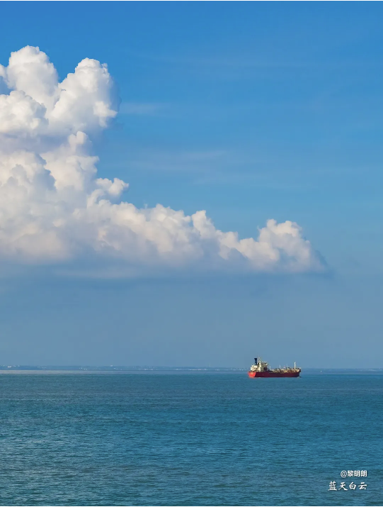 海风吹绉蔚蓝天。在摄影师@黎明朗的镜头里,澄澈蓝天似水洗般,大朵云絮蓬松如棉。如此坦荡开阔,正是广东人的心:壮阔里有温软,奔涌中见从容。