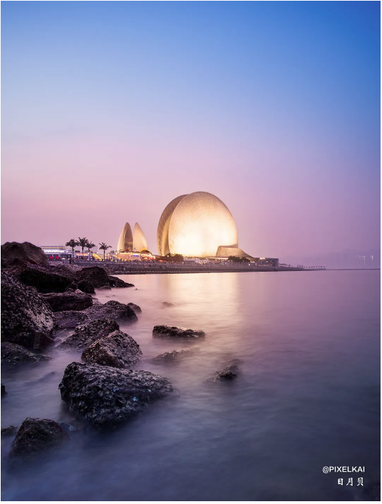 那一抹神秘的紫色,于静谧间尽显典雅。摄影师@PIXELKAI用镜头定格珠海“日月贝”,抓住了广东人的雅致与浪漫:不刻意讲究,把日子过成细水流长。