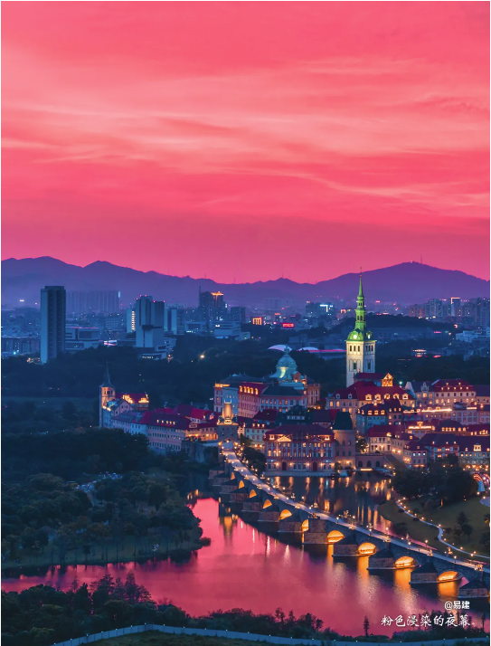 暮色渐沉沉,余霞散成绮。在摄影师@易建的镜头里,整片夜色被柔软的粉包裹着,让城市既踏实又舒服。恰似广东人的温柔:不声不响,暖得刚好。