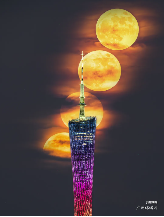 黑夜藏着万千星辉。在摄影师@黎明朗的镜头中,金黄的圆月与广州塔的斑斓灯光交相辉映,让沉静的夜晚绚丽非常。不固守、不排斥,广东人海纳百川,把不同色彩织进生活,越开放越精彩。