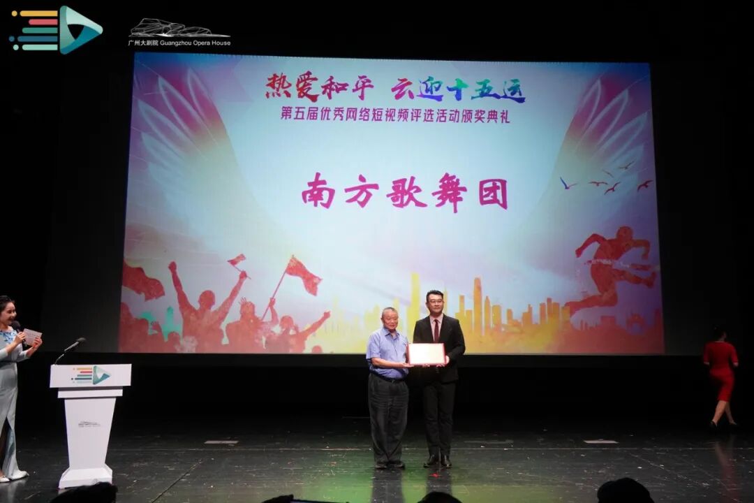 9月15日晚,“热爱和平 云迎十五运”第五届优秀网络短视频征集活动颁奖典礼在广州大剧院举行,公布组委会大奖、主播奖、表演奖、编导奖等大奖归属。许鸿飞受邀出席活动。