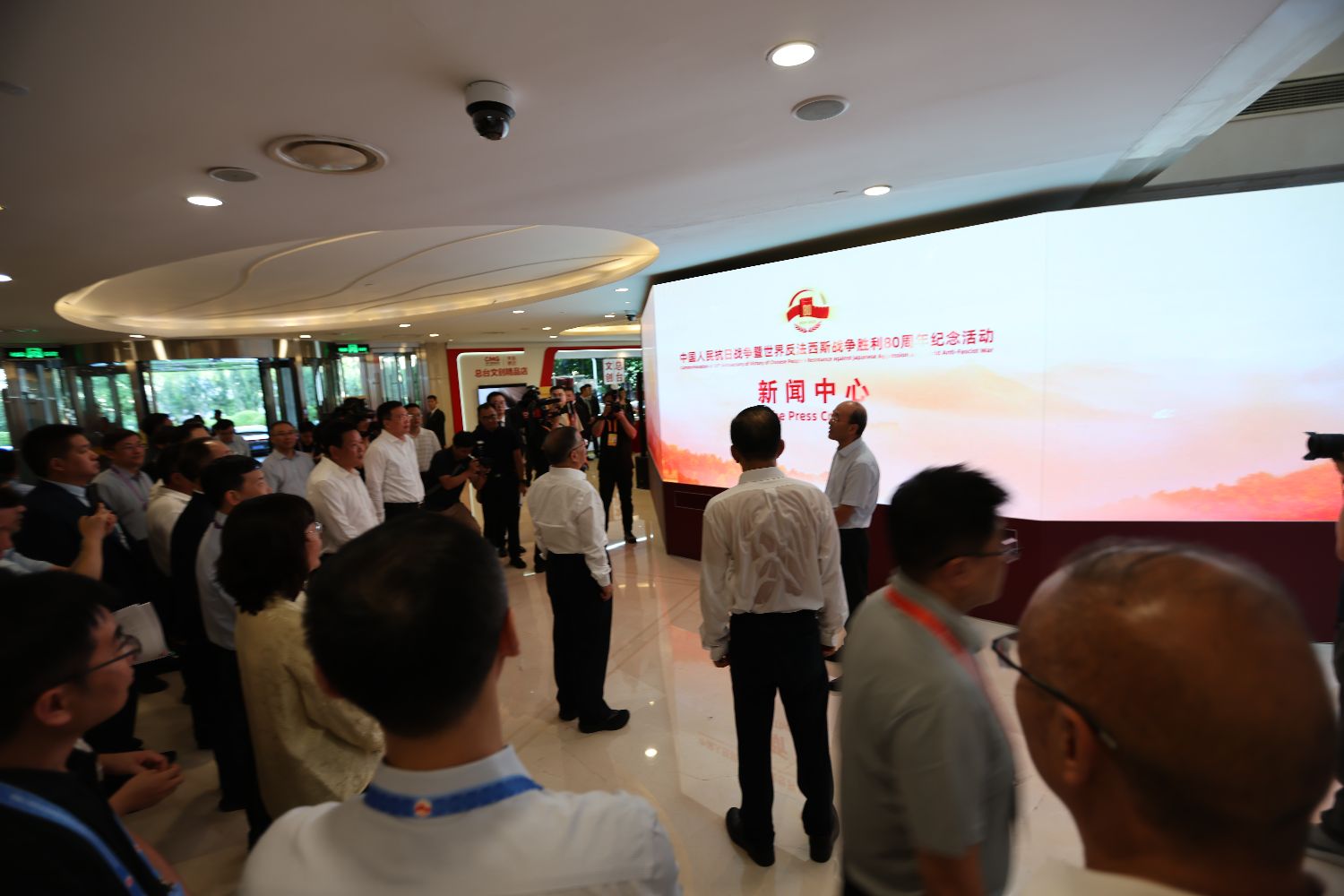 新聞中心作爲此次重大紀念活動的重要保障平台,承擔着服務中外記者、組織權威發布、協調媒體采訪、傳播中國聲音的重要使命。中央領導的到來,爲奮戰在一線的新聞工作者們極大地鼓舞了士氣。