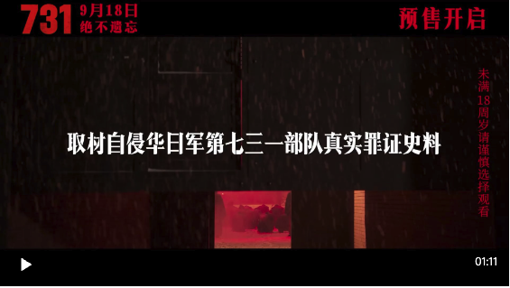 《731》于9月18日在全球首映