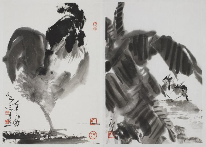 病榻上的“艺术之瘾”,催生出不寻常的灵感。韩天衡构思出的篆刻新作,以“空”字为边框,内刻混沌苍穹,“空与不空”的哲学思辨蕴含其中;在病房局促的小桌上,他又即兴泼墨,缱绻嬉戏的水鸟、悠然游曳的金鱼、昂首挺胸的公鸡跃然纸上。