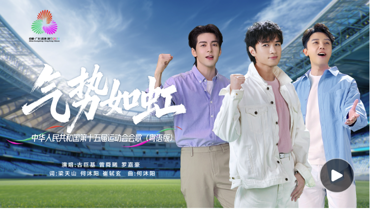 10月25日,中华人民共和国第十五届运动会会歌《气势如虹》粤语版MV正式发布。歌曲由中国音乐家协会副主席、深圳大学金钟音乐研究院院长何沐阳作曲,梁天山、何沐阳、崔轼玄作词;MV由粤港澳三地歌手古巨基、曾舜晞、罗嘉豪联袂演绎。