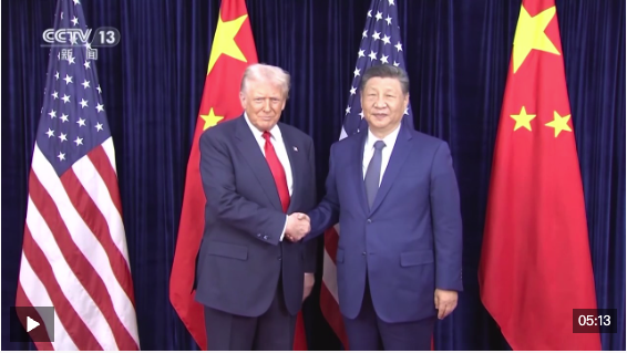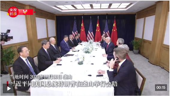 当地时间10月30日,国家主席习近平在釜山同美国总统特朗普举行会晤。