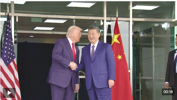 当地时间10月30日中午,国家主席习近平在韩国釜山同美国总统特朗普举行会晤。中美元首会晤结束后,特朗普总统送习近平主席上车。