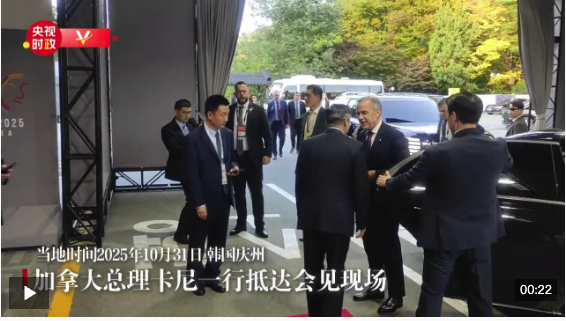 当地时间10月31日下午,国家主席习近平在韩国庆州出席亚太经合组织第三十二次领导人非正式会议期间会见加拿大总理卡尼。