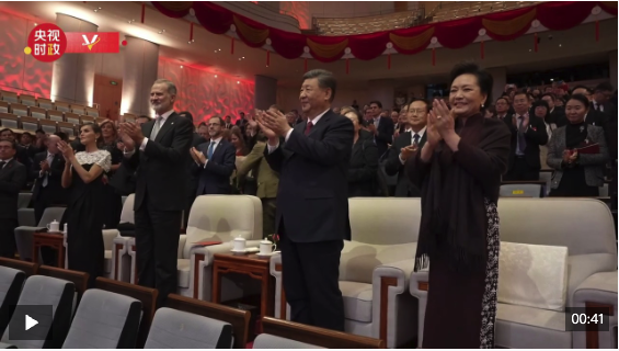 11月12日晚,国家主席习近平和夫人彭丽媛在北京国家大剧院同西班牙国王费利佩六世夫妇一同观看西班牙皇家剧院音乐会。