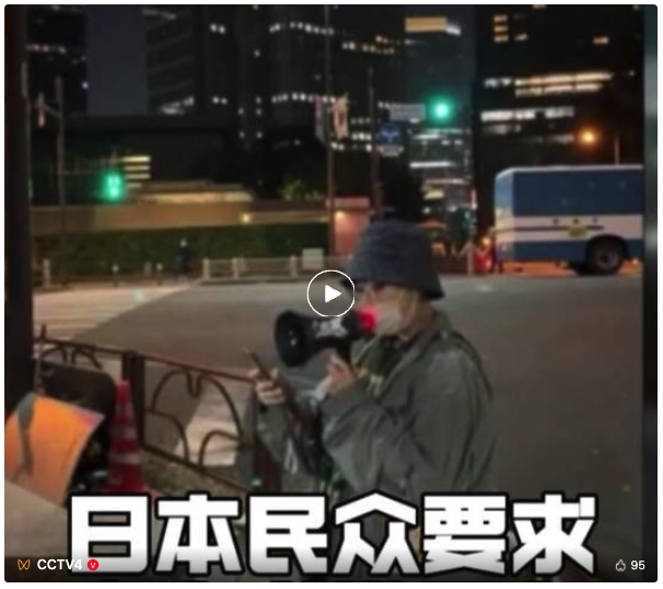 当地时间15日,超过100名日本普通民众在位于东京的首相官邸前举行集会,抗议日本首相高市早苗近日在日本国会答辩时发出涉台错误言论。