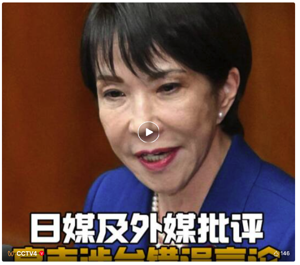 高市7日在国会答辩时就“台湾有事”表示,如果伴随出动军舰和使用武力,可能会构成“存亡危机事态”。根据日本法律,如发生被认定为威胁日本的“存亡危机事态”,即便并未直接遭受攻击,日本也将可以行使集体自卫权。10日,高市在国会答辩时坚称,其言论遵循日本政府的一贯见解,无意撤回。