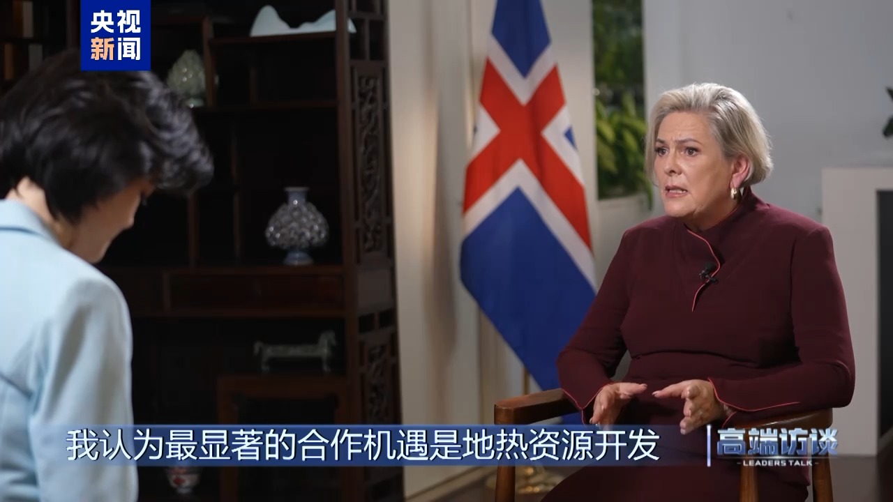 邹韵:您刚谈到了绿色能源与可持续发展是两国合作的重要亮点。冰岛在地热等清洁能源开发利用方面经验丰富,而中方正全力以赴推进“双碳”目标。您认为双方应如何加强协作,共同为建设更加绿色、更加公平合理的世界贡献力量?