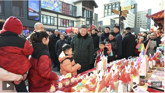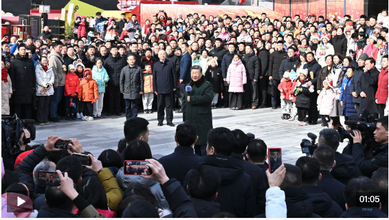 中华民族传统节日春节即将到来之际,中共中央总书记、国家主席、中央军委主席习近平在北京考察并看望慰问基层干部群众,向全国各族人民和香港同胞、澳门同胞、台湾同胞、海外侨胞拜年!祝愿海内外中华儿女在农历马年龙马精神、身体健康、事业有成、阖家幸福!祝愿伟大祖国山河锦绣、风调雨顺、繁荣昌盛、国泰民安!