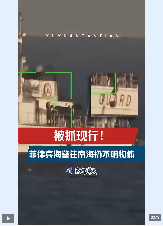 玉渊谭天丨菲律宾海警在南海投放不明物体被抓现行