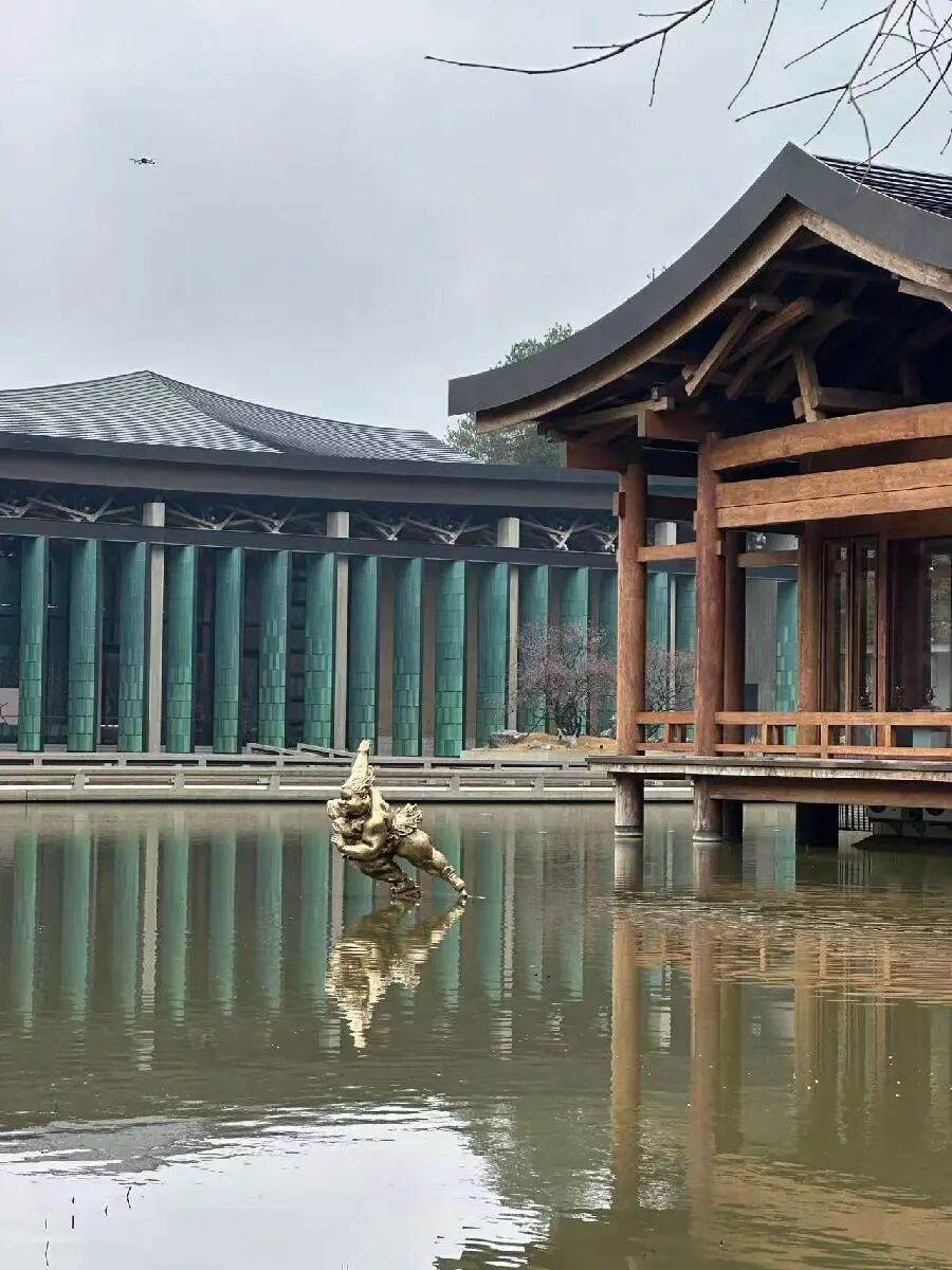位于世界文化遗产——杭州良渚古城遗址附近的杭州国家版本馆,由国际著名建筑设计师王澍担任主创建筑师,建筑上广泛使用的青瓦屏扇、曲面屋顶、夯土墙、斗拱等充分体现宋代建筑的韵味。在这样的建筑群里,许鸿飞的百余件雕塑作品融入其中,涵盖音乐舞蹈、体育运动、乡村振兴、主旋律和美好生活等主题的作品110余件,此外还有74场世界巡展的签名海报和相关书籍。