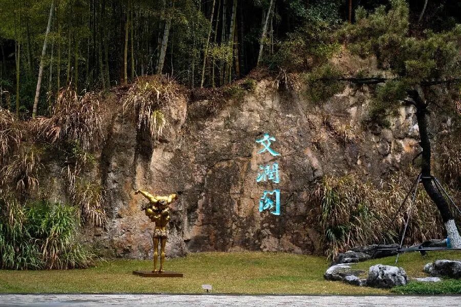 在杭州国家版本馆不同场景展出的雕塑