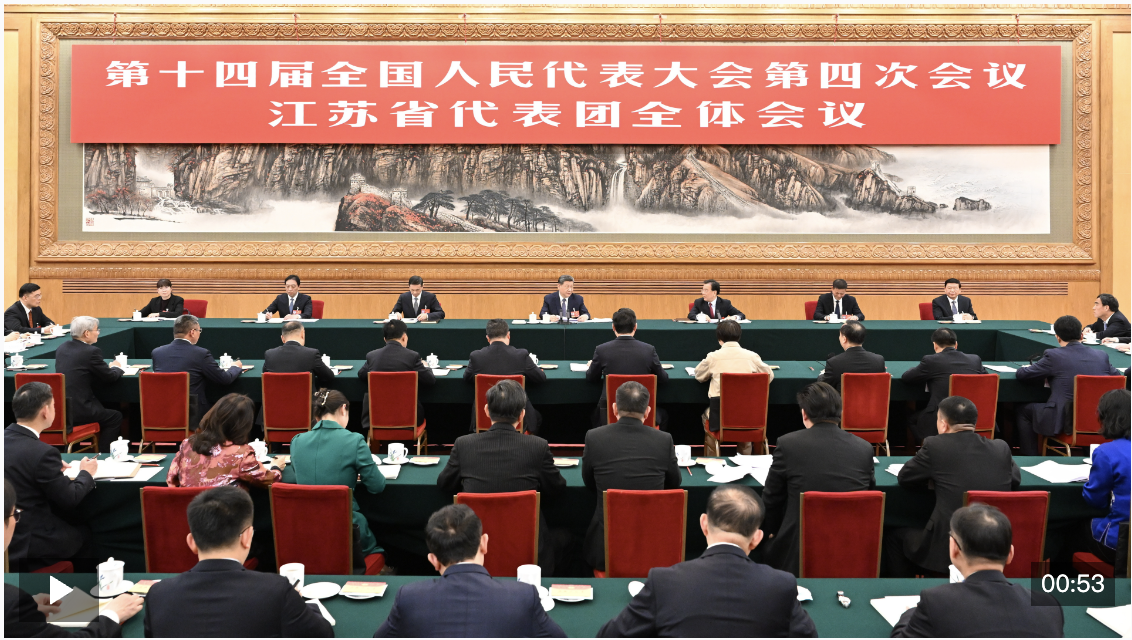 5日下午,中共中央总书记、国家主席、中央军委主席习近平参加他所在的十四届全国人大四次会议江苏代表团审议。