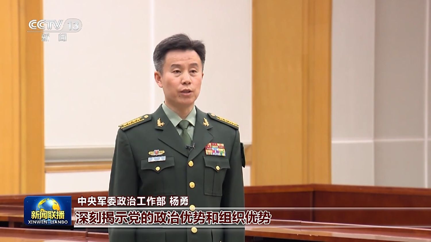 中央军委政治工作部杨勇:习主席的重要讲话,深刻揭示党的政治优势和组织优势是推进强军事业的根本优势。在国防和军队现代化新“三步走”战略转进的历史关口,我们一定坚决贯彻习主席决策部署,扭住加强党的领导和党的建设这个关键,不断提升各级党组织领战抓建、攻坚解难的能力水平,以党的坚强领导保证部队建设发展的正确方向,扎实推进强军蓝图一步步变成现实。