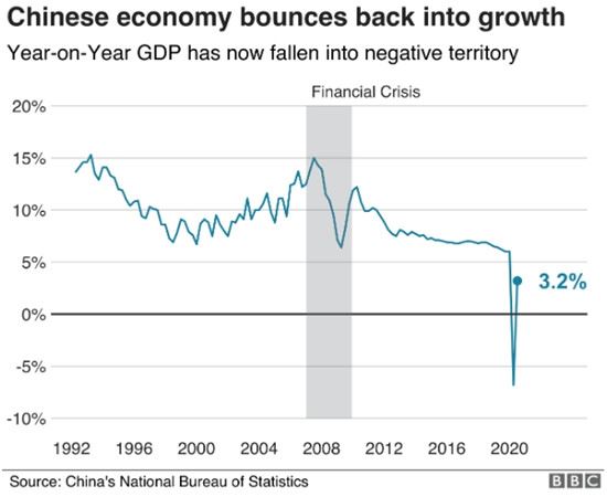 Even BBC news can not avoid reporting an obvious fact: “Chinese economy bounces back into growth”. The world's second biggest economy saw a sharp decline in the first three months of the year during coronavirus lockdowns. But figures show China's Gross Domestic Product (GDP) returned to growth during April to June.