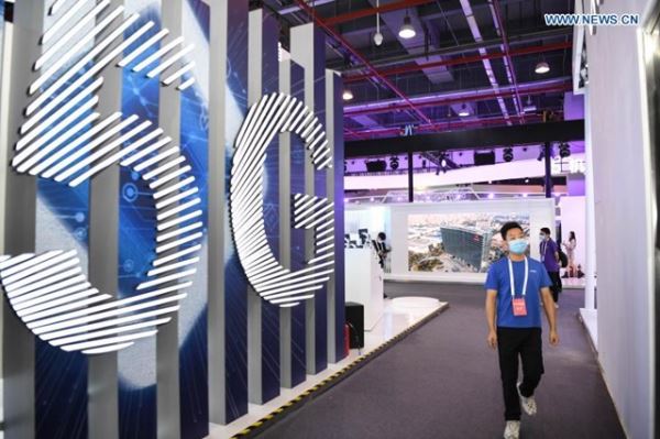 Photo taken on Nov. 26, 2020 shows a 5G-themed exhibition held during the World 5G Convention in Guangzhou, south China's Guangdong Province. The 2020 World 5G Convention kicked off in Guangzhou Thursday, during which world-renowned infocom scientists, 5G service providers and 5G application adopters will exchange ideas on aspects of cutting-edge technologies, industrial development trends and innovative applications in 5G industry. (Xinhua/Deng Hua)