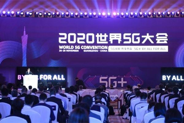 Photo taken on Nov. 26, 2020 shows the scene of the opening of the World 5G Convention in Guangzhou, south China's Guangdong Province. The 2020 World 5G Convention kicked off in Guangzhou Thursday, during which world-renowned infocom scientists, 5G service providers and 5G application adopters will exchange ideas on aspects of cutting-edge technologies, industrial development trends and innovative applications in 5G industry. (Xinhua/Deng Hua)