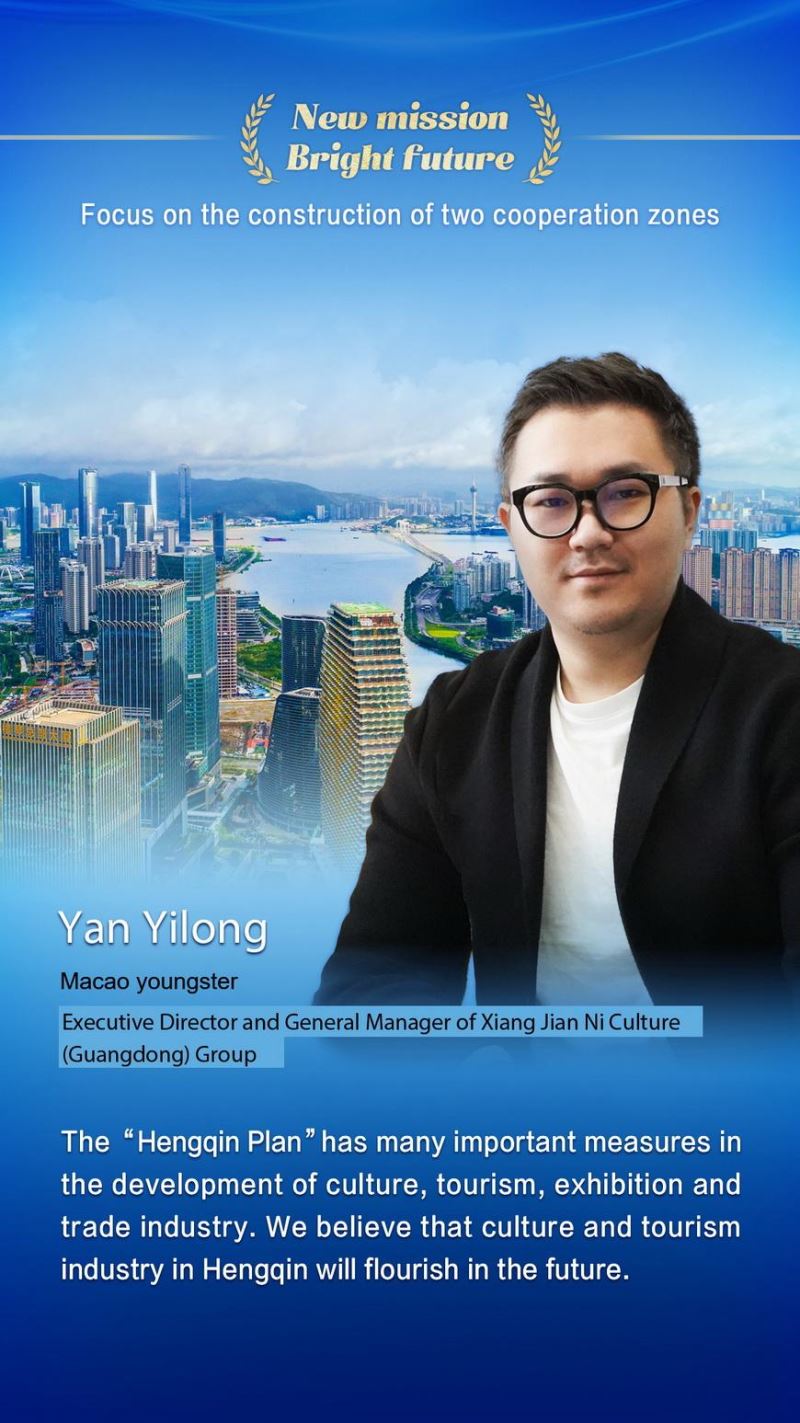 TheGeneral Plan for the Construction of the Guangdong-Macao In-depth Cooperation Zone in Hengqin and the Plan for Comprehensively Deepening Reform and Opening up of the Qianhai Shenzhen-Hong Kong Modern Service Industry Cooperation Zoneare of great significance in supporting and promoting Hong Kong and Macao to actively integrate themselves into China’s overall development. Let’s check a series of posters and hear what Hong Kong and Macao youngsters have to say!