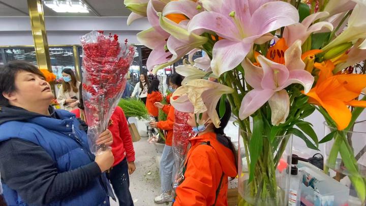 中文:在岭南花卉市场,人们纷纷选购自己中意的鲜花装饰他们的家,来迎接农历新年。人们买鲜花回去不仅为了观赏,同样也有讨彩头的意思。今年鲜花市场的人流量比以往增加了三成。商家也各自“大开脑洞”,开发出各种新的网红鲜花产品。挑选一束鲜花,一起迎接新年吧!