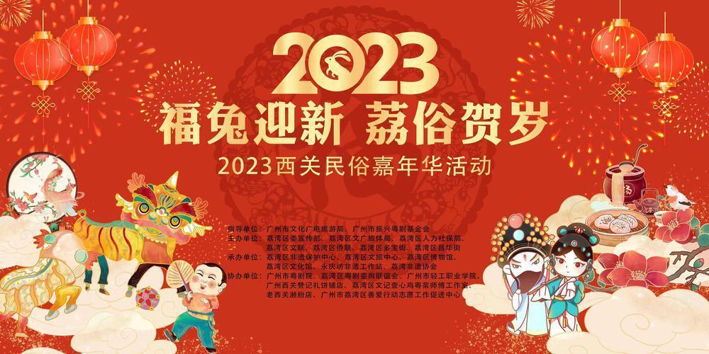 由文化和旅游部非物质文化遗产司、中央网信办网络传播局主办的2023年“文化进万家—视频直播家乡年”活动于1月14日正式启动。据不完全统计,在2023年春节期间,广东将推出近600场非遗传承相关活动。1月14日(农历腊月廿三)至2月5日(农历正月十五)期间,广东省以狮舞、龙舞、剪纸、灯彩、花市、灯会等与年文化相关的各级非遗代表性项目为依托,开展非遗展示展演展销、参观互动体验等传承实践和惠民活动。如广州市迎春花市、佛山祖庙博物馆“飞鸿狮舞贺新春”“万福粤韵迎新年”活动、潮州市“千年神韵大美潮州——2023潮州古城花灯灯展”、中山西区街道“龙舞(醉龙)迎春巡游”等等。