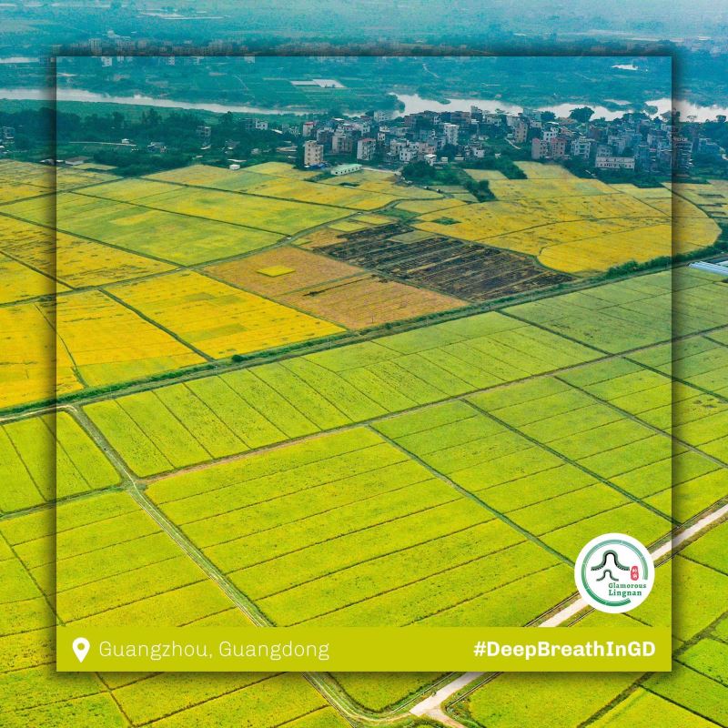 #DeepBreathInGDWheat fields have covered the local gentle slope, and trams run along the green rail. By clicking on the green pictures, let's smell the fragrance of wheat and see the fruits of the "Ecological Construction of Green and Beautiful Guangdong" program.
