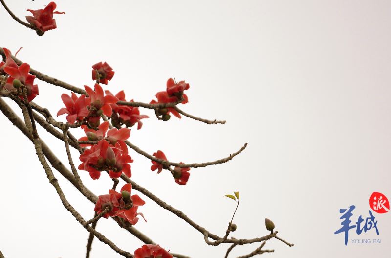 Nesta Primavera de Março, floresceram canteiros de flores em Guangzhou, também chamada a Cidade das Flores. As árvores de sumaúma vermelha (árvores de seda vermelha), Bauhinia variegata (uma espécie de botões vermelhos chineses), trompete dourado, flores de cerejeira, e as árvores sem dor (Saraca merges Pierre) estão em plena floração por todas as ruas.No distrito de Huangpu, as árvores de sumaúma vermelha e as árvores sem dor entram em florescência florescente, proporcionando aos turistas paisagens pitorescas.