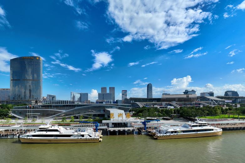 The port is a Class 1 passenger terminal and was built in two phases with an investment of approximately 393 million yuan. It currently has two passenger ships, the 'Haizhu Lake' and the 'Haizhu Bay,' and the route has shortened the commute between Pazhou and Hong Kong International Airport to only 2 hours.