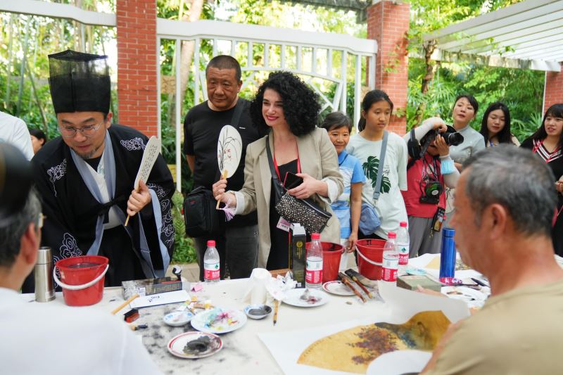 Dozens of delegates from Malaysia, Indonesia, Brazil, Turkey, and other countries strolled in the steamy gardens. They were mesmerized by the melody of the “Song of the Crouching Dragon”, fully immersed in the rich singing of Cantonese opera, and amazed by the diverse Chinese paintings and calligraphy.