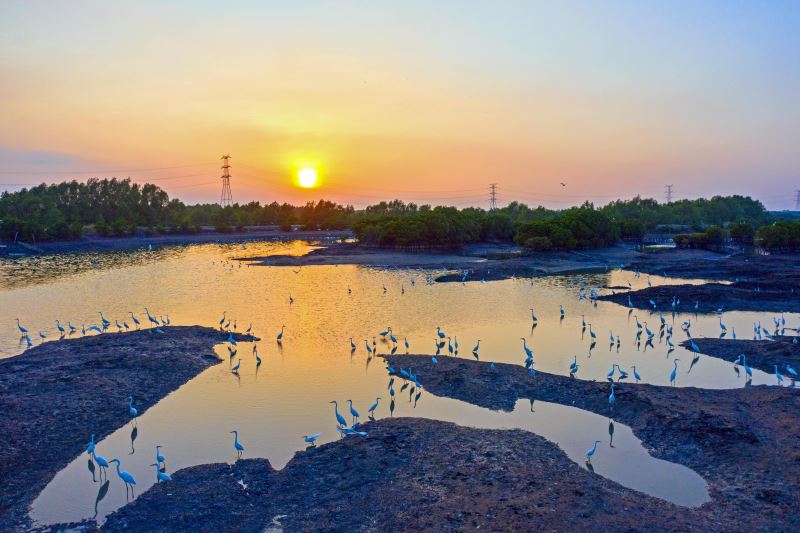 A Reserva Natural Nacional do Mangue de Guangdong Zhanjiang tem a maior e mais concentrada área de distribuição de mangais na China. Nos últimos 20 anos, foram plantados cerca de 1.500 hectares de mangais em Zhanjiang, proporcionando um espaço de vida mais amplo para muitas criaturas. Pesquisas mostram que o número de espécies de aves em Zhanjiang aumentou de 194 em 2002 para 312 este ano, e mais criaturas estão a escolher os mangais em Zhanjiang.