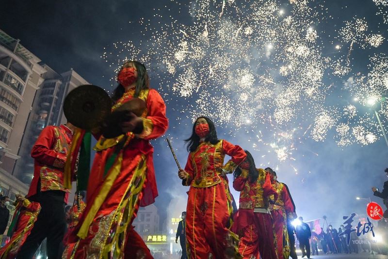 Com o som de aplausos e fogos de artifício, o público nas ruas mergulhou em actividades tradicionais, empurrando a forte atmosfera do Festival da Primavera para um clímax.