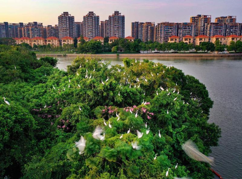 Sob o tema "Do acordo à acção: Nos últimos anos, a cidade de Dongguan tem feito tudo o que está ao seu alcance para proteger as florestas, as zonas húmidas e os animais selvagens e fez da floresta uma barreira ecológica importante, contribuindo para o aumento da população de diversas espécies. Entre elas, cinco são de primeira classe a nível nacional e 27 são animais protegidos de 2ª classe a nível estatal. Dongguan também monitorizou 329 espécies de aves. As aves incluem Platalea leucorodia, Ciconia boyciana, Plegadis falcinellus, protegidas de primeira classe, Paramesotriton hongkongensis, faisão-prateado (a ave da província de Guangdong), gatos-leopardo e Coelognathus radiatus, e o ameaçado pisco-de-peito-amarelo.