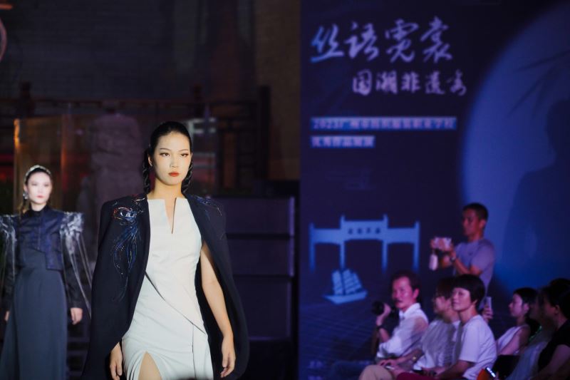 在千年古港前,看一场潮流非遗秀,听一段悠扬粤剧;搭乘“海事专列”,畅游“海丝”起点;在宋代书院里,感受非遗魅力……6月10日是中国“文化和自然遗产日”, “千年古港·璀璨丝路”——2023年“文化和自然遗产日”系列活动在广州市黄埔区举行。师生们通过走秀的形式,展现香云纱等原料创新利用和服装设计、织造技艺等方面的成果。现场展演的服装,将现代时尚元素融入服装设计中,以穿越时空、创新面貌、展现活力的方式,彰显出独特的文化魅力。