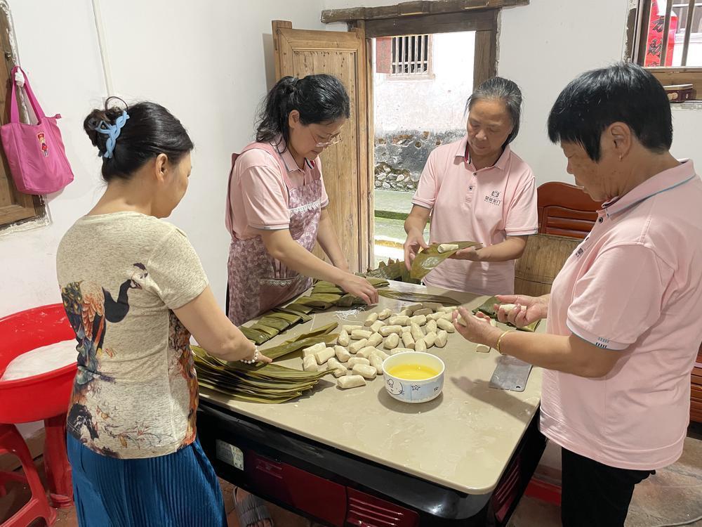 Quando o zongzi fumegante e perfumado é finalmente destapado, as camadas de folhas de zongzi embrulhadas são retiradas, uma forte fragrância de arroz misturada com o aroma especial da carne chega ao nariz. Se der uma dentada e saborear, o sabor do zongzi de carne espalhar-se-á da ponta da língua para todo o corpo. Na cidade de Shaoguan, no condado de Shixing, é costume a população local Hakka fazer zongzi e bolos de arroz glutinoso com folhas de bananeira durante o Festival do Barco-Dragão. O processo de fazer mochi e embrulhar zongzi é fastidioso e cansativo, mas os Hakka apreciam-no, pois sentem que não se trata apenas de um deleite festivo, mas também de uma espécie de património festivo.