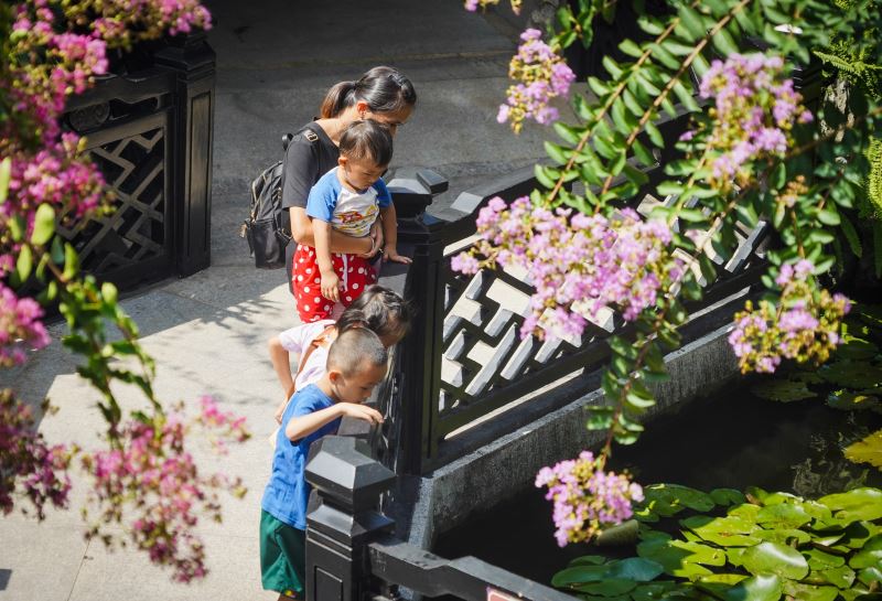 夏天是赏紫薇花的最佳时节,在广州番禺余荫山房内,成千上万朵紫薇花正在盛放,将整座园林装点得清新秀美,吸引了一批又一批的游客前来观赏。游人们漫步在紫薇树下,一抬头,便是无数繁花映入眼帘,有红有紫,如梦如幻,同时又置身于岭南的古典园林之中,亭台楼阁、曲径回廊,一应俱全,就好像做了一场回溯旧梦,令人心醉。