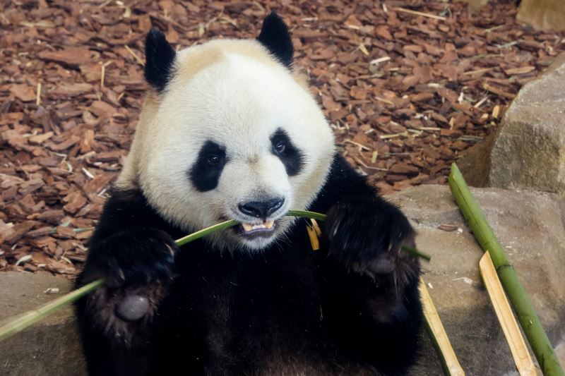 在成都大熊猫繁育研究基地,大熊猫“芝麻”在吃竹子 新华社发