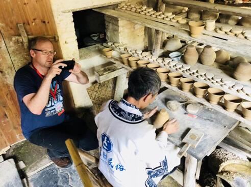 On the 9th, the weather cleared up. The team visited HuanglingShaiQiu Scenic spot in Wuyuan and Jingdezhen, a famous cultural city with a history of a thousand years. Huanglingshaiqiu Scenic area is a typical mountain settlement village. It is extremely different from the business city life which perfectly demonstrated the traditional Chinese idea that “Slow and steady wins the race.” Foreign journalists have shuttled through the ancient Huizhou folk houses in the village, appreciating the wooden carving on the building and admiring the beautiful scenery in the mountains. It was a feast for their eyes and a treat to their minds.
