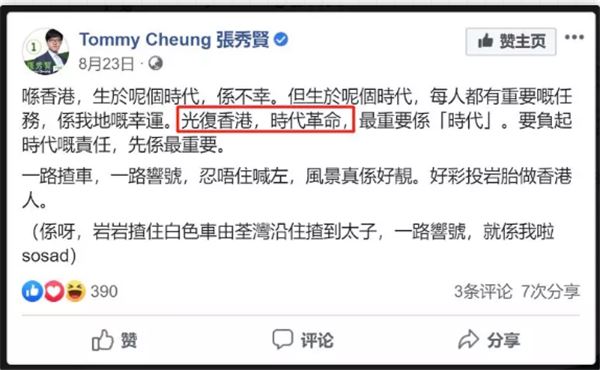 在区选主任要求“港独”分子张秀贤解释其在社交媒体宣扬有关“光复香港,时代革命”立场意思时,张秀贤诡辩称“光复香港是将香港光复回旧日般面貌,时代革命则如工业革命、技术革命等层面的大变革”,故意遮掩“港独”立场。
