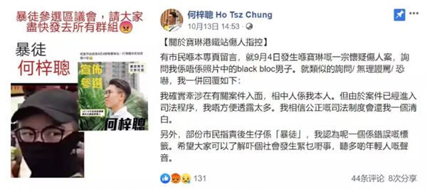 9月4日,何梓聪纠集其他暴徒在港铁宝琳站内暴力袭击休班的港铁站长,已被控告犯袭击致造成身体伤害罪。
